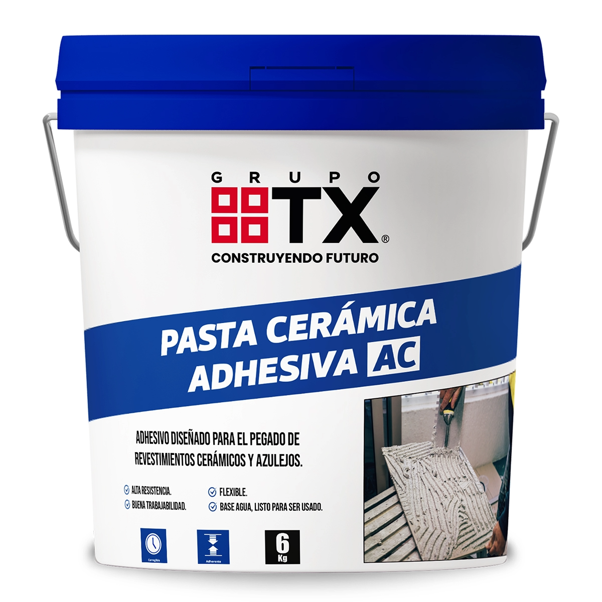 Adhesivo cerámico en pasta TX de 6 kg, listo para usar, ideal para instalar cerámicas y revestimientos con gran adherencia y fácil aplicación.
