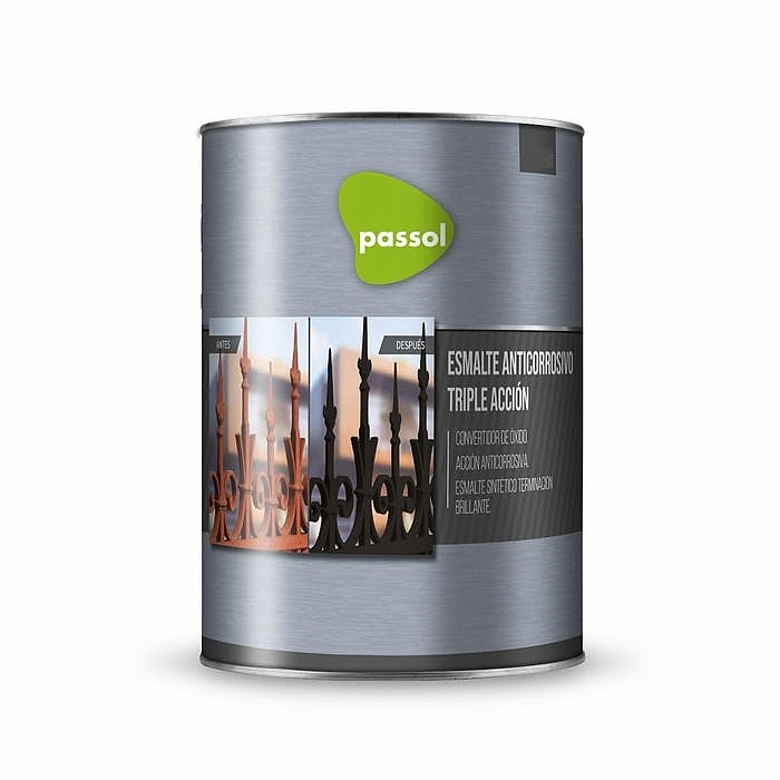 Este anticorrosivo triple acción Passol blanco 1/4 GL combina protección anticorrosiva, excelente adherencia y acabado decorativo, eliminando la necesidad de aplicar primer y pintura por separado. Es ideal para aplicar en rejas, portones, estructuras metálicas, perfiles, herramientas y superficies de fierro o acero.