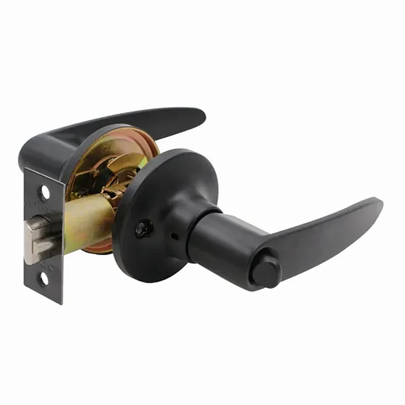 Cerradura Odis 203 dormitorio negra con manilla, ideal para puertas interiores con sistema de privacidad.