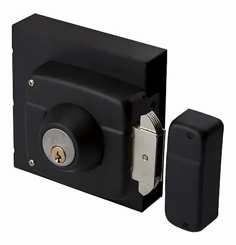 La cerradura Odis 393 de sobreponer incluye caja metálica, lo que entrega mayor resistencia al mecanismo de cierre y facilita su instalación en puertas de madera o metal. Su sistema de cierre con llave permite bloquear la puerta de forma segura, ayudando a mejorar la protección del acceso.