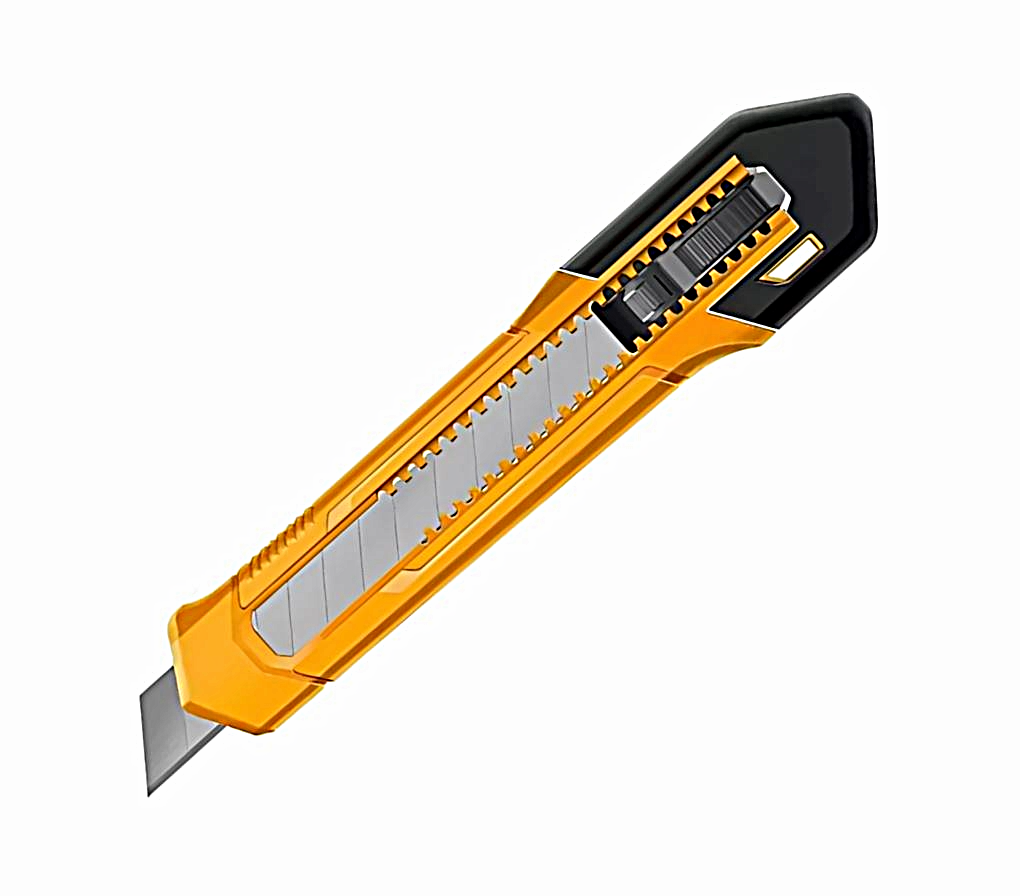 El Cuchillo Cartonero Retráctil INGCO modelo HKNS16001 es una herramienta manual diseñada para corte preciso de materiales ligeros como cartón, papeles gruesos, plásticos, cuero sintético y láminas finas. Su diseño incorpora una hoja de gran formato (18 mm de ancho × 100 mm de largo) y un cuerpo compacto de aproximadamente 152 mm de longitud, lo que lo hace fácilmente manejable tanto en entornos de taller como en faenas de construcción ligera.