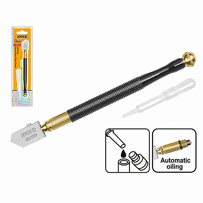 El corta vidrios con mango de metal INGCO HGCT03 es una herramienta profesional diseñada para realizar cortes precisos y limpios en vidrio plano, ideal para trabajos de instalación, cerrajería, vitrinas o manualidades. Su estructura metálica robusta y mango ergonómico garantizan un agarre firme, control total y excelente durabilidad, incluso en condiciones de uso intensivo.
