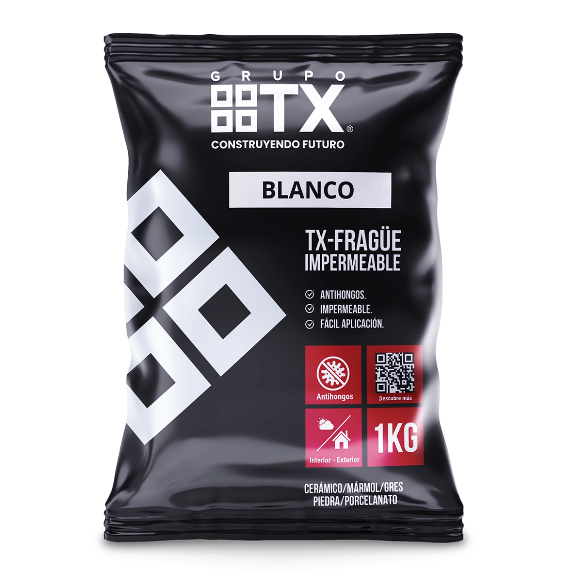 Frague TX blanco 1 kg. Ideal para sellar juntas de cerámicas y porcelanatos con acabado limpio y resistente.