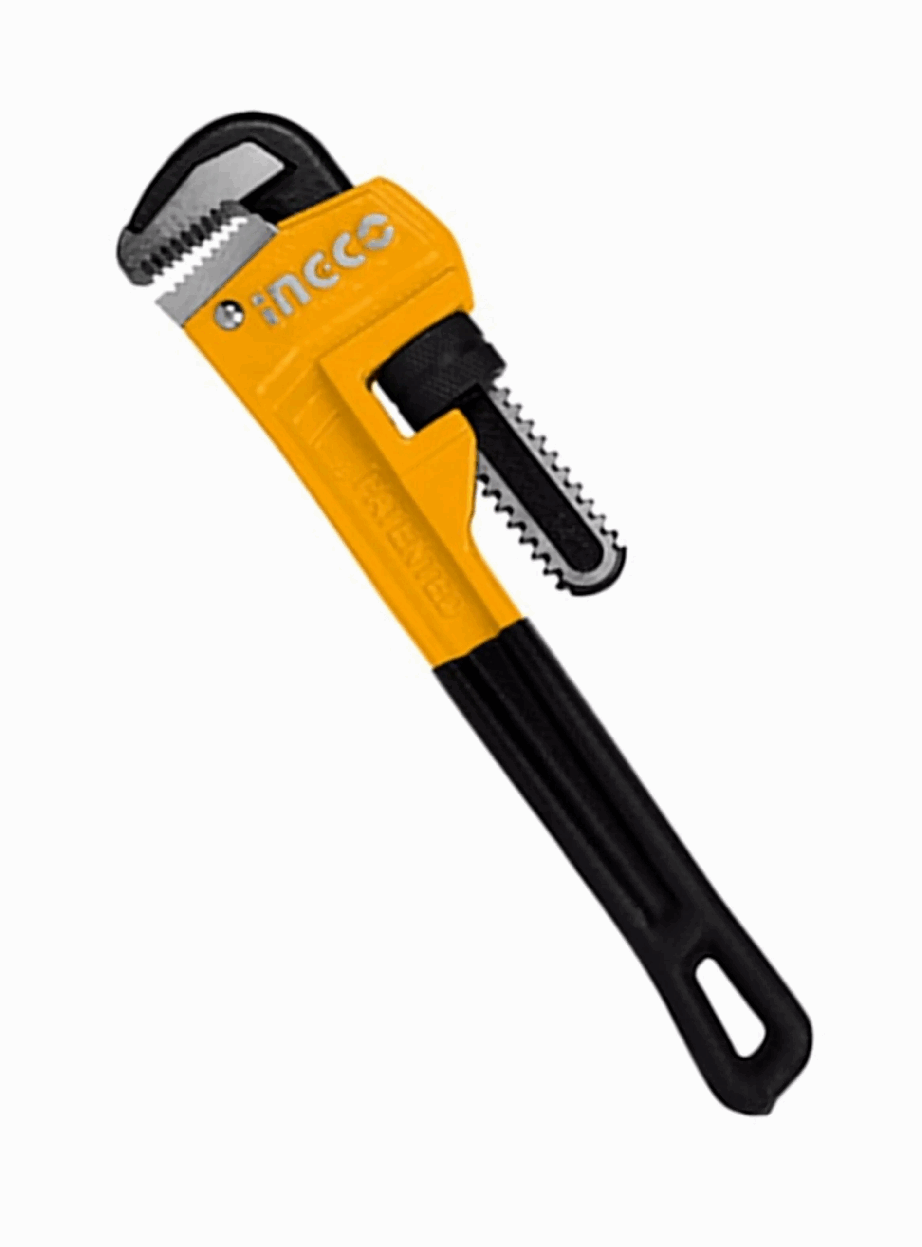 Llave Stillson INGCO HPW0808 8″: hierro fundido dúctil, mandíbula forjada en acero al carbono, acabado negro-pulido. Ideal para tuberías, instalaciones y mantenimiento profesional.