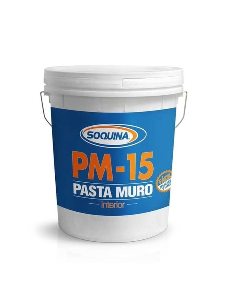 Pasta muro Soquina en tineta de 24 kg, fácil de aplicar y de gran adherencia, ideal para interiores. Permite obtener muros lisos, parejos y listos para pintar.
