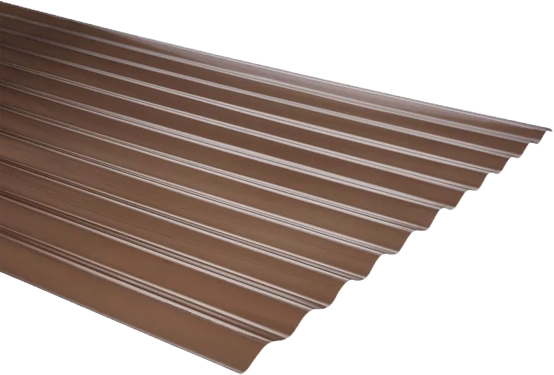 Policarbonato acanalado bronce de 0,5 mm, liviano y resistente, ideal para techumbres y cubiertas que requieren durabilidad y un control eficiente de la luz solar.