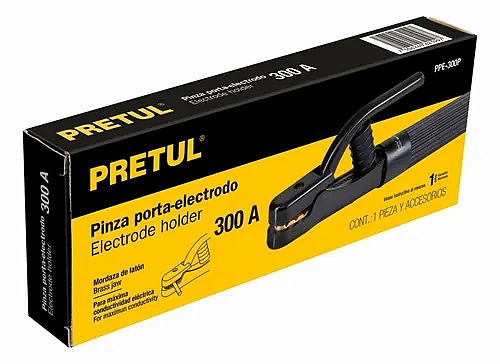 Porta electrodo Petrul 300 A resistente y seguro. Ideal para trabajos de soldadura eléctrica en construcción e industria.