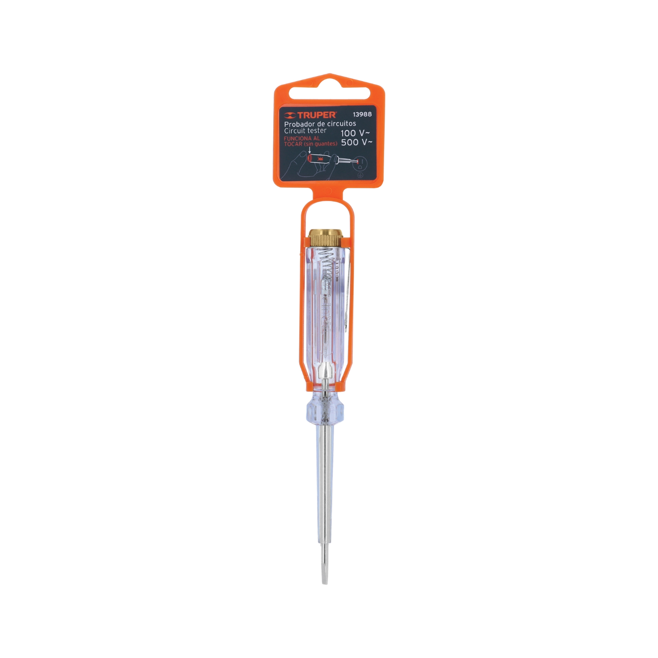 El probador de corriente Truper de 14 cm es una herramienta práctica y segura para detectar la presencia de corriente eléctrica en instalaciones y equipos. Es ideal para trabajos de electricidad, mantenimiento y revisión rápida de circuitos, permitiendo verificar tensión de forma sencilla y confiable.