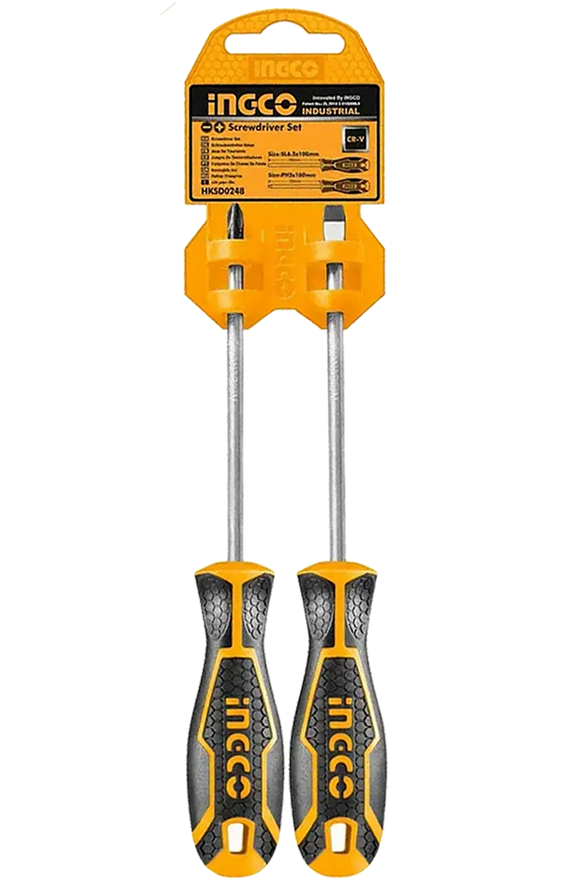 El set de destornilladores INGCO modelo HKSD0248 incluye dos piezas esenciales para cualquier caja de herramientas, ya sea profesional o doméstica. Su especificación incluye: